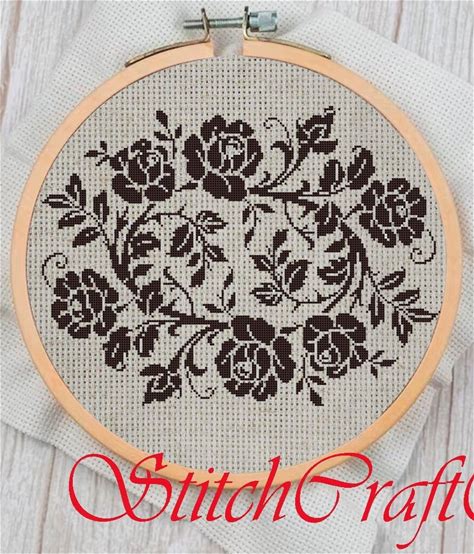 Vintage Blackwork Cross Stitch Pattern: Monochrome Floral Design (PDF Pattern)