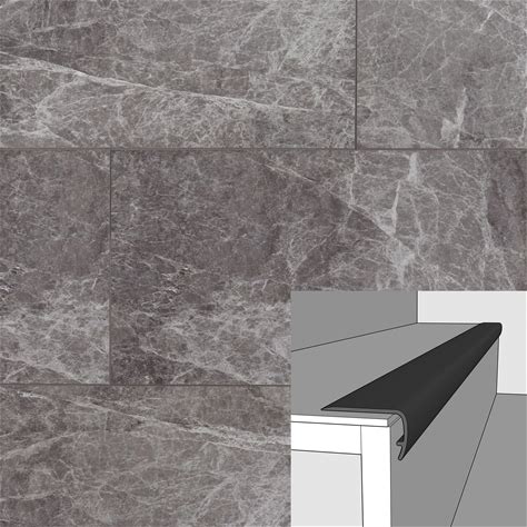 Floor & Decor | Stone Grey Marble 94 Inch Vinyl Overlapping Stair Nose | 100910405