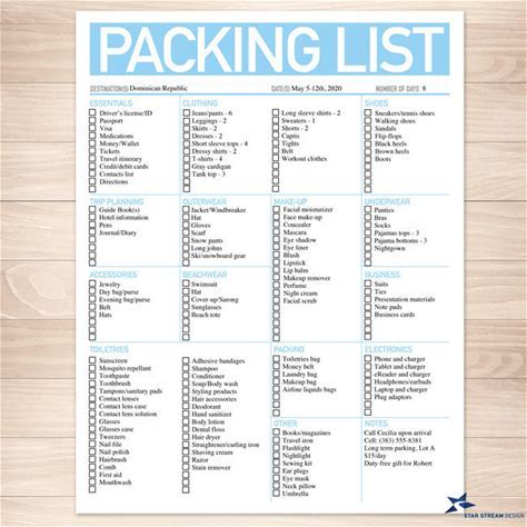 Editable Vacation Packing Checklist | Printable Packing List - Etsy