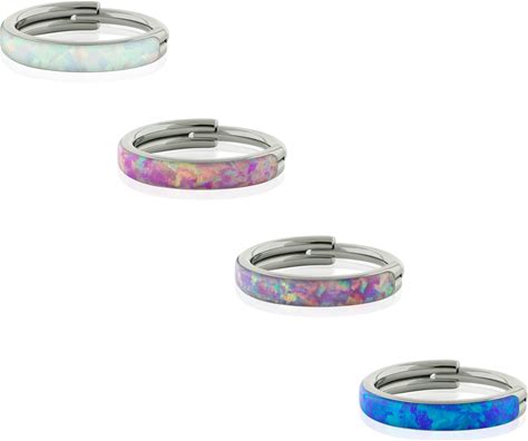 16G Implant Grade Titanium Clicker Side Facing Opal Cartilage Hinged Hoop, Earlobe Earrings, Helix Piercing, Hoop Earring