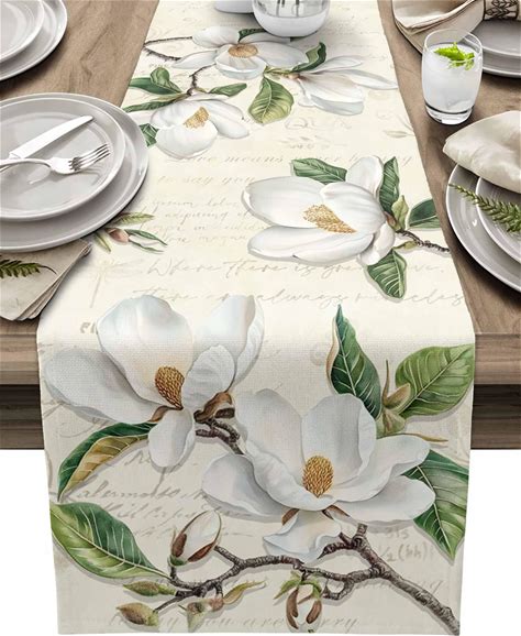 Spring Magnolia Flowers Table Runner 13X72inch Farmhouse Florals Waterproof Table Cloth Holiday Kitchen Dining Table Decorations For Indoor Outdoor