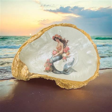 Mermaid Oyster Shell Medium Trinket Dish: Coastal Decoupage Shell Art