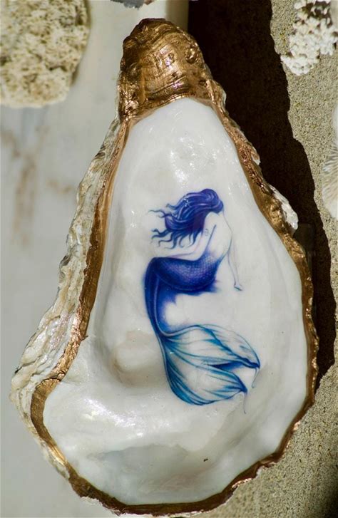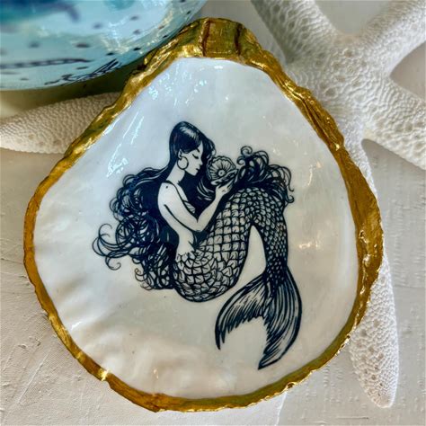 Mermaid Oyster Shell Trinket Dish: Mermaid Jewelry Dish, Mermaid Art, Mermaid Shell