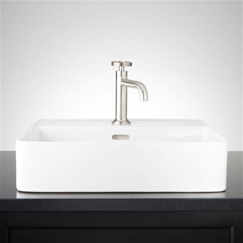 Hibiscus White Rectangular Fireclay Vessel Sink - Single Hole - Signature Hardware