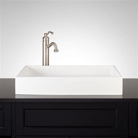 28" Cosima Rectangular Matte Solid Surface Vessel Sink In White - Signature Hardware