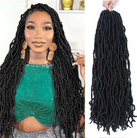 LMZIM 22 Inch Soft Locs Crochet Hair Pre Looped 7 Packs Faux Locs Crochet Braids Goddess Locs Hair For Black Women (1B, 22 Inch (Pack Of 7))