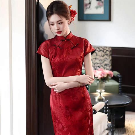 Red Floral Elegant Chinese Cheongsam Gown,Wedding Qipao Dress, Modern Traditional Qipao For Brides, Floral Chinese Wedding Gown