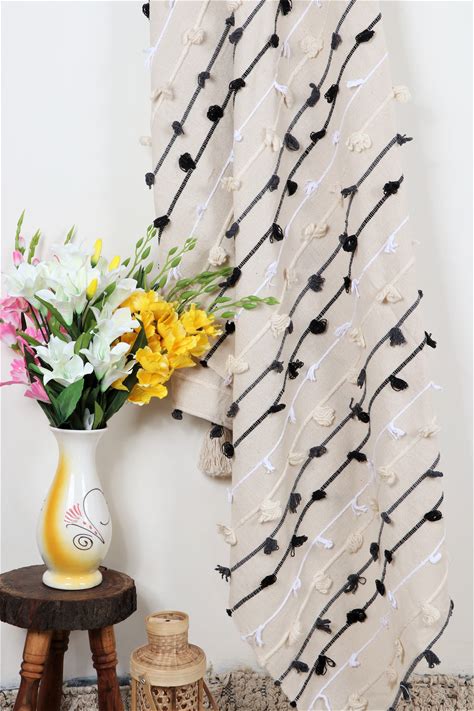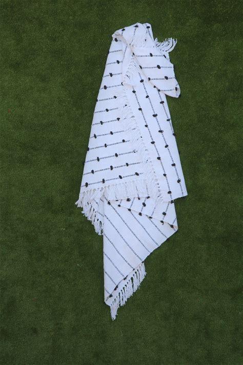 Handmade Cotton Loop Throw Blanket | Soft Woven Texture | White & Black Bohemian Accent Throw For Living Room Decor