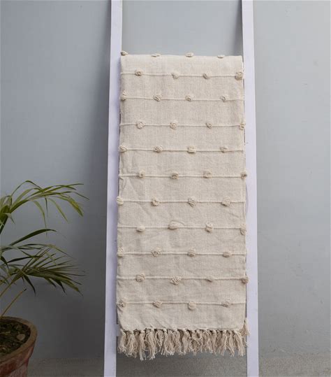 White & Mustard Yellow Handloom Woven Cotton Loops Throw Blanket Boho Throws Textured Throw Blanket
