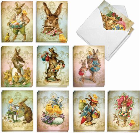 The Best Card Company 20 Assorted Easter Notes Box Set 4 X 5.12 Inch With Envelopes (10 Designs, 2 Each) Vintage Chicks Bunnies AM9164EAG-B2x10