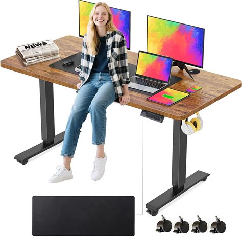 Legooin 55 X 24 in Electric Standing Desk Adjustable Height, Sit Stand Home Office Rolling Computer Desk With 35 X16 in Mouse Pad, Wheels And Hooks27