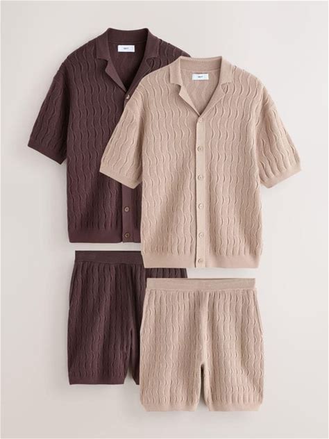 Next Ultrasoft Smart Textured Knitted Shirt And Shorts Set 2 Pack - Natural - Short Sleeve T-Shirts Size L