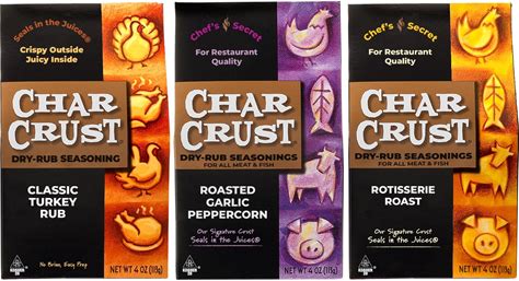 Char Crust Dry-Rub Seasonings 3-Flavor Roasting Gift Set | Rotisserie Roast, Roasted Garlic Peppercorn, Classic Turkey Rub | Perfect For Turkey,