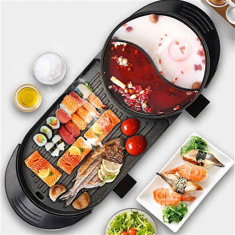 Hot Pot With Grill, Electric Hot Pot And Frying Pan, Shabu Shabu Pot With Grill, 2 in 1 Indoor Nonstick Shabu Shabu Pot And Griddle, Dual Temperature