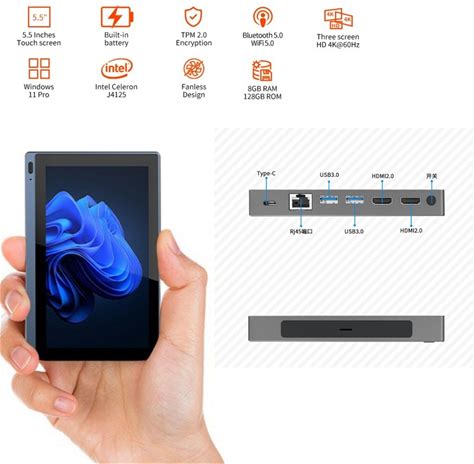 Tablet Window 11 Mini Pc 5.5" Touch Screen Mini Computer J4125