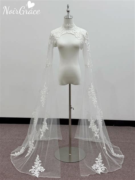 Lace Wedding Cape Veil With Sleeves, High Neck Bridal Cape, Long Bridal Shawl