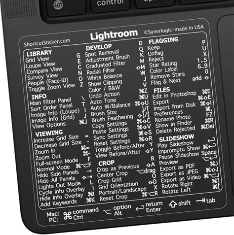 Synerlogic (5Pcs) For Adobe Lightroom Quick Reference Keyboard Shortcut Sticker For Any Macbook Or Windows PC (Clear-White)